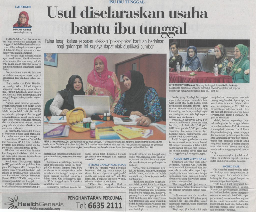 Berita Harian, 22 Mar 2015: Usul diselaraskan usaha bantu ibu tunggal