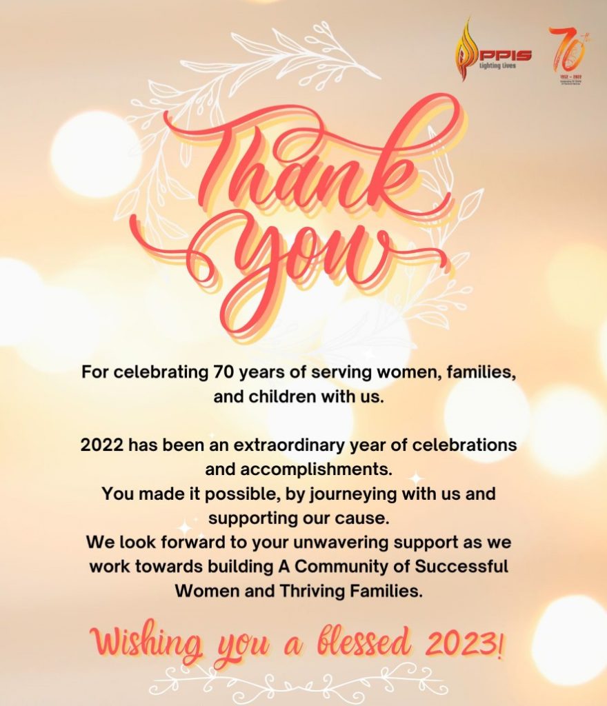 I am extremely proud of what #OnePPIS has accomplished in 2022. We dedicated all of last year to celebrate 70 amazing years of PPIS. Everyone was committed to commemorate our platinum jubilee meaningfully and celebrated by giving back. I hope you take the time to view our New Year Message on Facebook and Instagram.