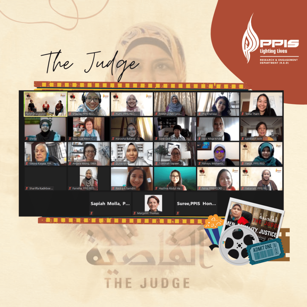 On Sunday, 16 August 2020, PPIS Research and Engagement Department (RED) held its inaugural film review cum e-panel discussion in a belated commemoration of International Women’s Day where guest-of-honour was Ms Nadia Samdin, Member of Parliament for Ang Mo Kio GRC. The award-winning documentary, ‘The Judge’, featured Kholoud Al-Faqih, the first woman to be appointed a judge in a Shari’a court in the Middle East. Dr Suzaina Kadir and Ms Malathi Das, in the discussion moderated by Ms Khadijah Madihi, highlighted the importance of an ecosystem of support and women’s self-drive in taking up opportunities to propel them forward. The session was abuzz with questions from PPIS and fellow women leaders on the topics of education, advocacy and strategies to help women break through.