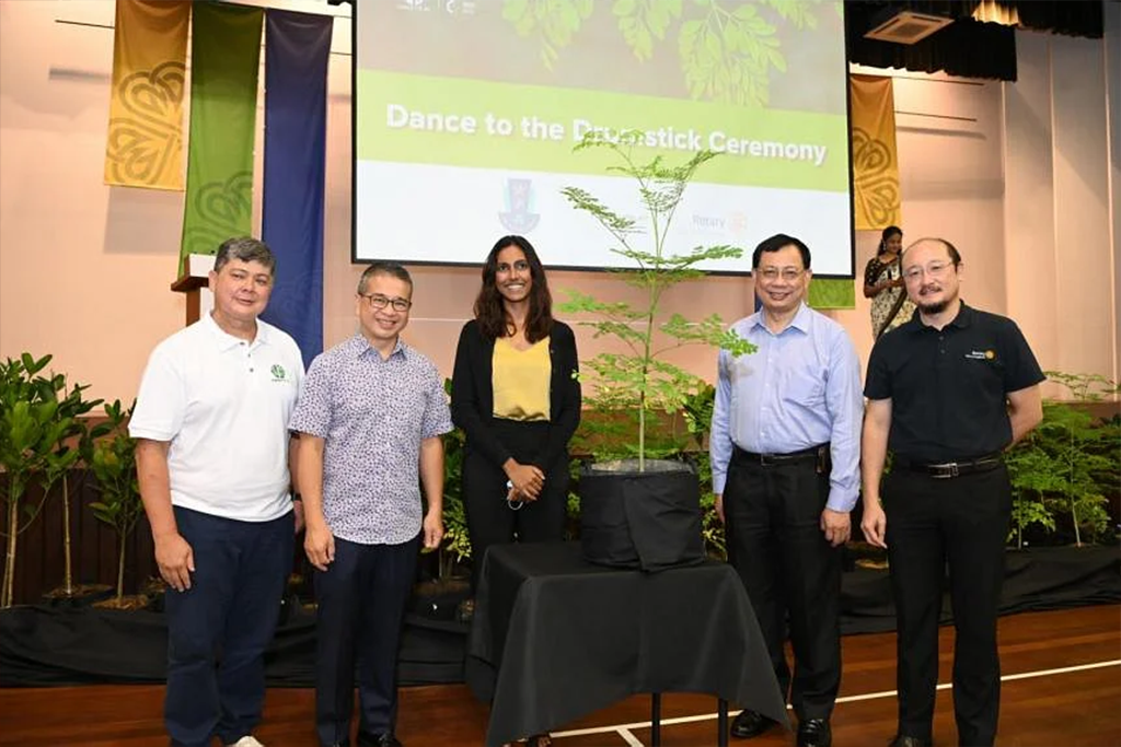 The Rotary Club pledged $250 per tree to St Patrick’s School to underwrite the cost of the trees. Upon harvest, these trees will be donated to the migrant worker community. The first 100 moringa trees nurtured by St Patrick’s have been harvested and were donated at the event, to be planted in migrant worker dormitories across the island.